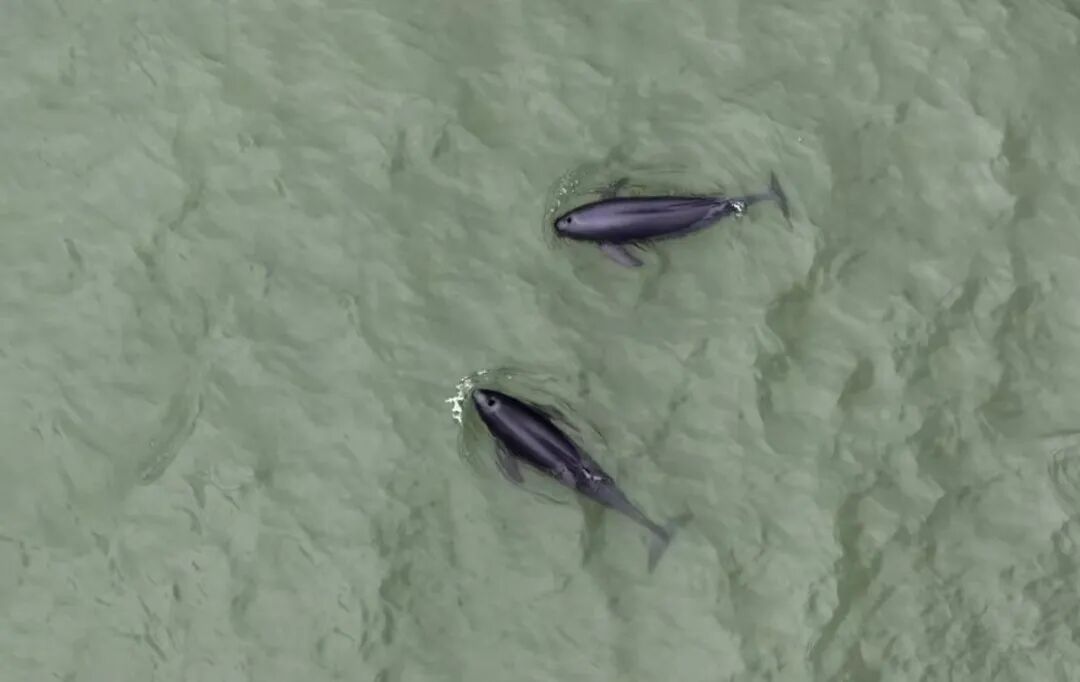 2025年2月23日下午,南通报业记者在长江南通段滨江公园龙爪岩水域拍摄到江豚“谈恋爱”画面,这一场景非常罕见且珍贵。江建华摄