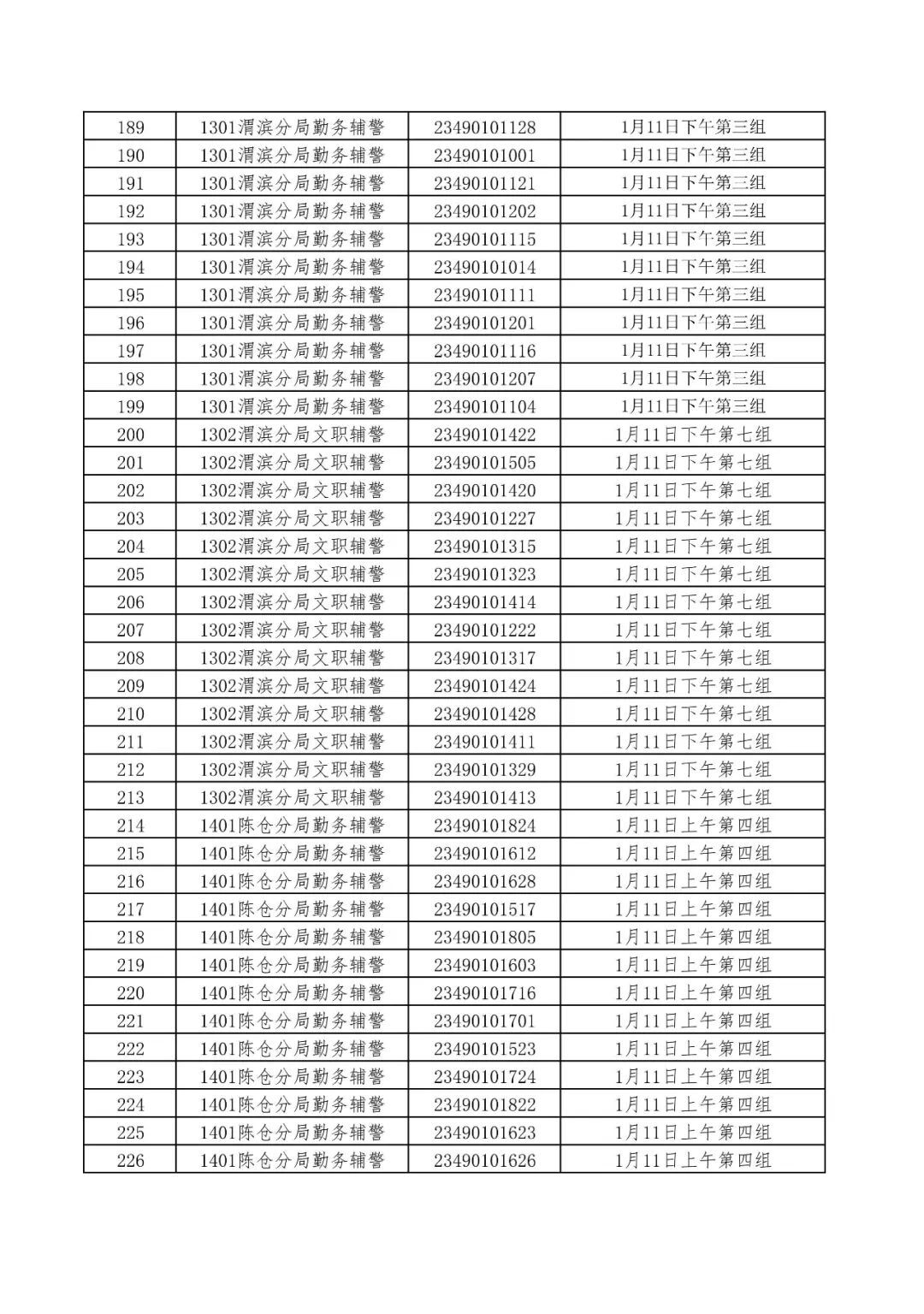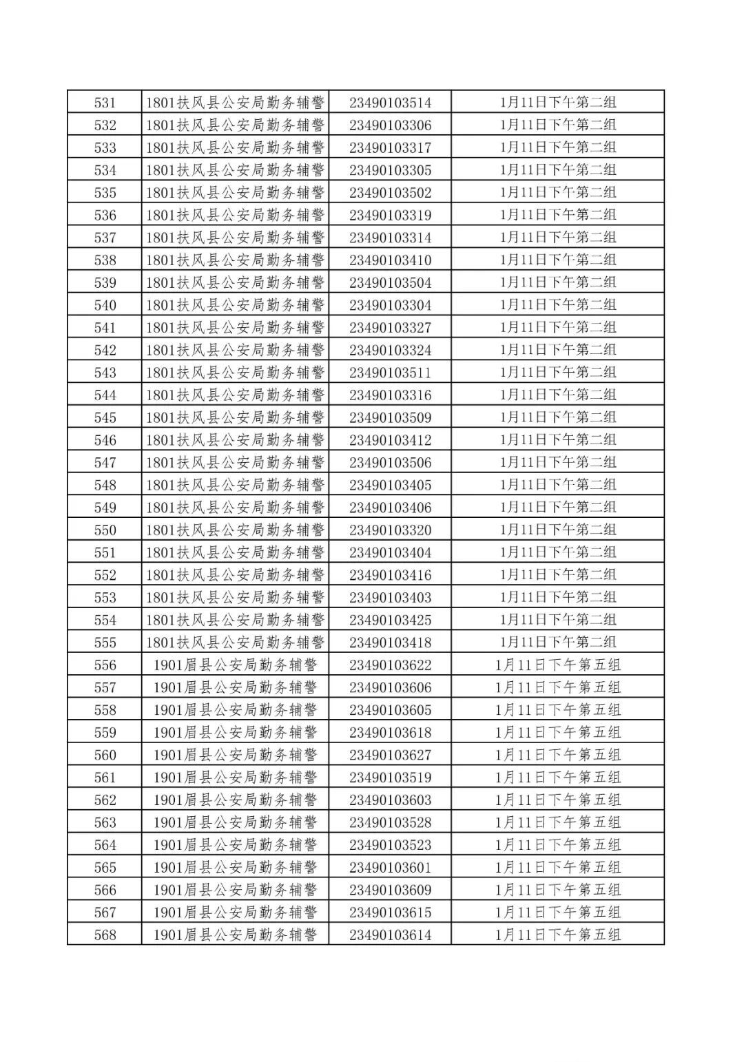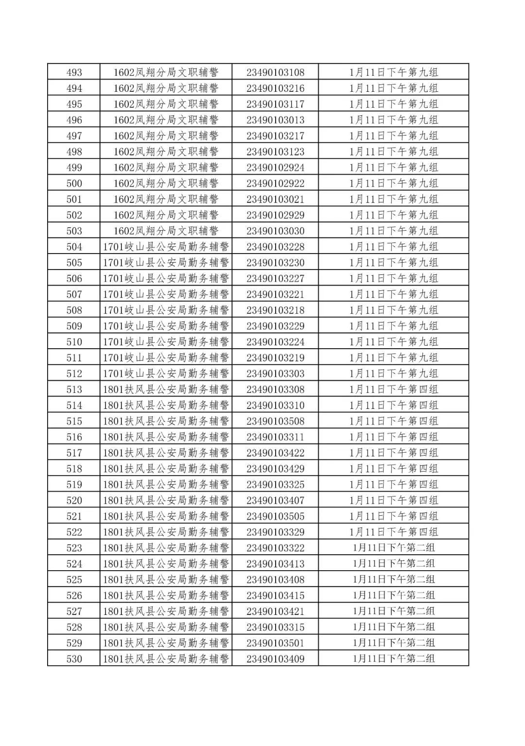 1.2023年宝鸡市公安局公开招聘警务辅助人员面试分组名单;
