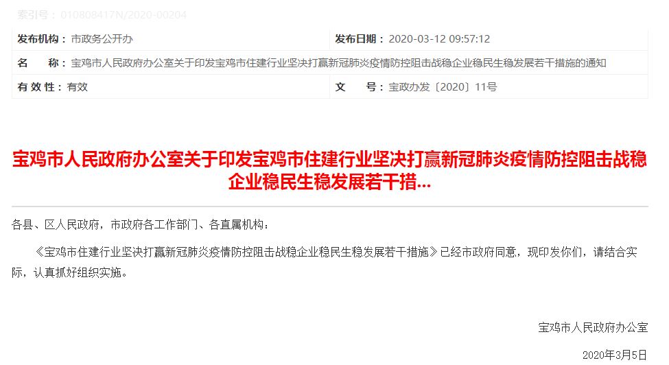 3月12日9时57分,陕西省宝鸡市人民政府办公室印发《宝鸡市住建行业坚决打赢新冠肺炎疫情防控阻击战稳企业稳民生稳发展若干措施》,措施共计15条,其中第12条明确,各银行要积极争取降低首套住房贷款首付比例政策,公积金贷款最高额度由40万提高至50万。