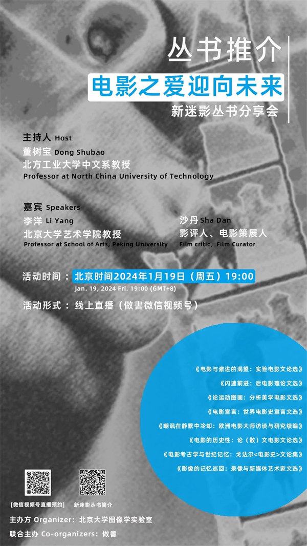 拜德雅图书工作室于2022年和2023年分别出版了“新迷影丛书”其中两本作品:《电影与激进的渴望:实验电影文论选》和《闪速前进:后电影理论文选》。恰逢该丛书又新增8本译作,北京大学图像学实验室联合做書将于周五晚,在北京的做書咖啡做一场直播分享。