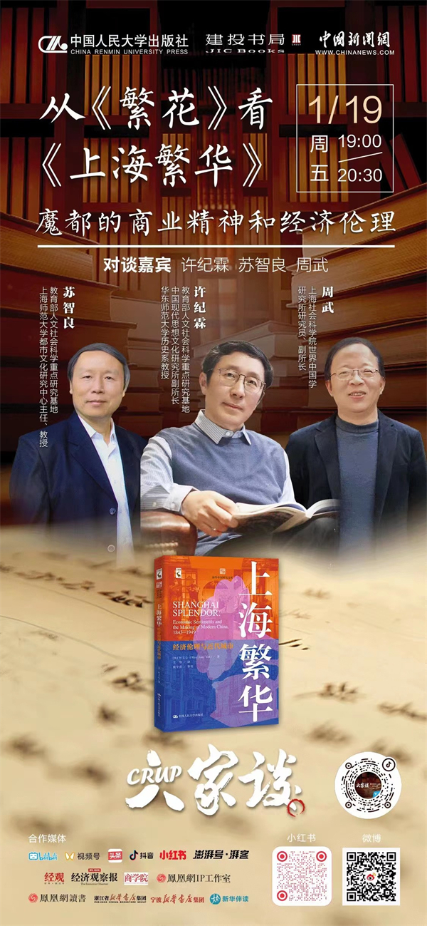 要了解今日之上海,必须回到20世纪上半叶,回顾那个摩登时代的上海繁华。周五晚,我们邀请到教育部人文社会科学重点研究基地中国现代思想文化研究所副所长、华东师范大学历史系教授许纪霖,教育部重大研究基地上海师范大学都市文化研究中心主任、教授苏智良,上海社会科学院世界中国学研究所研究员、副所长周武,与我们共同聚焦《上海繁华》,聊聊魔都的商业精神和经济伦理。