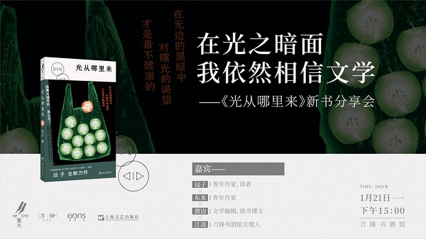 如果说作家远子的《光从哪里来》的出版过程之曲折本身就是一篇独异的小说,那么,刀锋必是这个故事最为重要的发生地点。1月21日,刀锋书酒馆将举行《光从哪里来》新书分享会,这是这本书的全国首发活动。