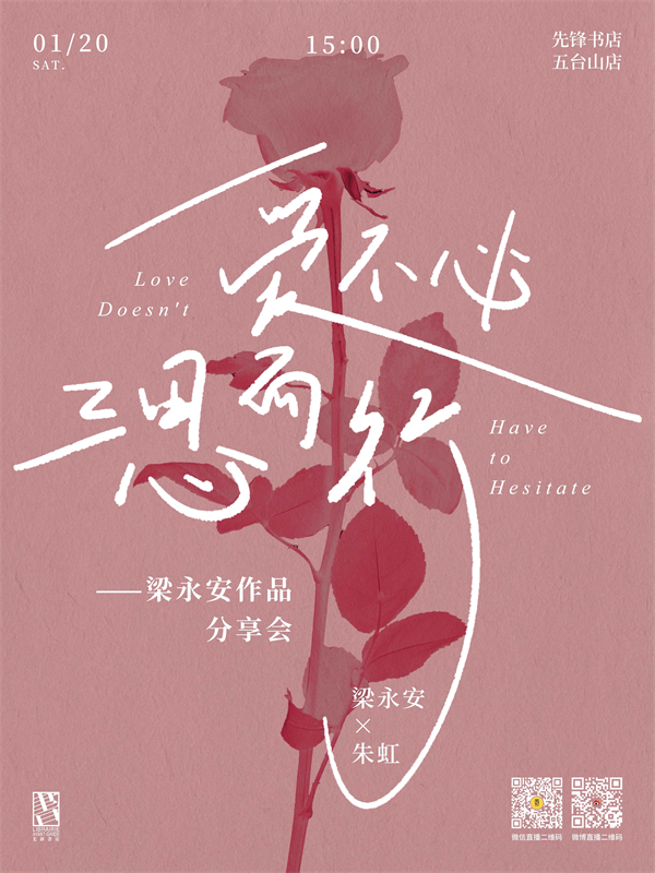 1月20日,我们邀请了复旦大学人文学者梁永安,与南京大学教授朱虹来到先锋书店五台山总店,与大家一同探索爱的奥义,让我们在这个爱已成奢侈品的时代,重建爱的能力。
