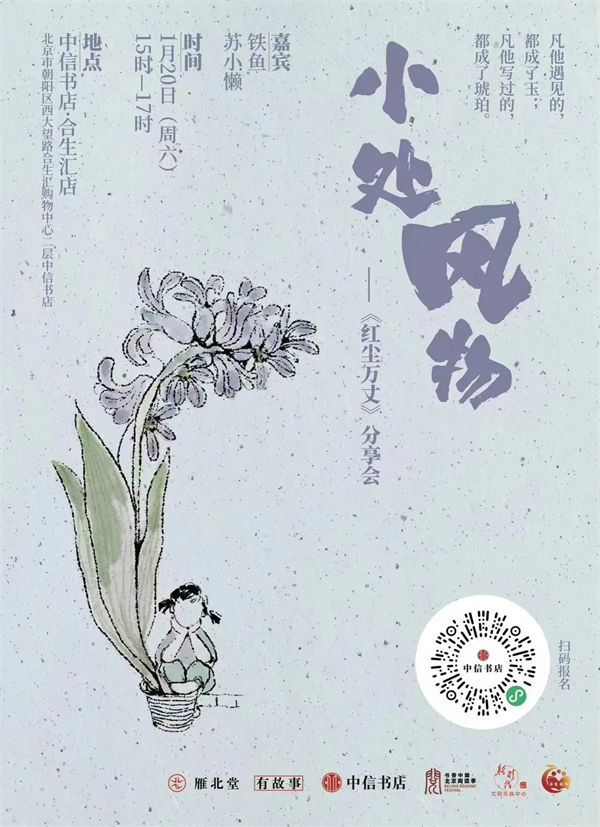 本周六下午,作家铁鱼将做客中信书店,和大家聊聊小吃、讲讲故事,分享散文集《红尘万丈》的创作。希望也能听到你的烟火人间,温柔世界。