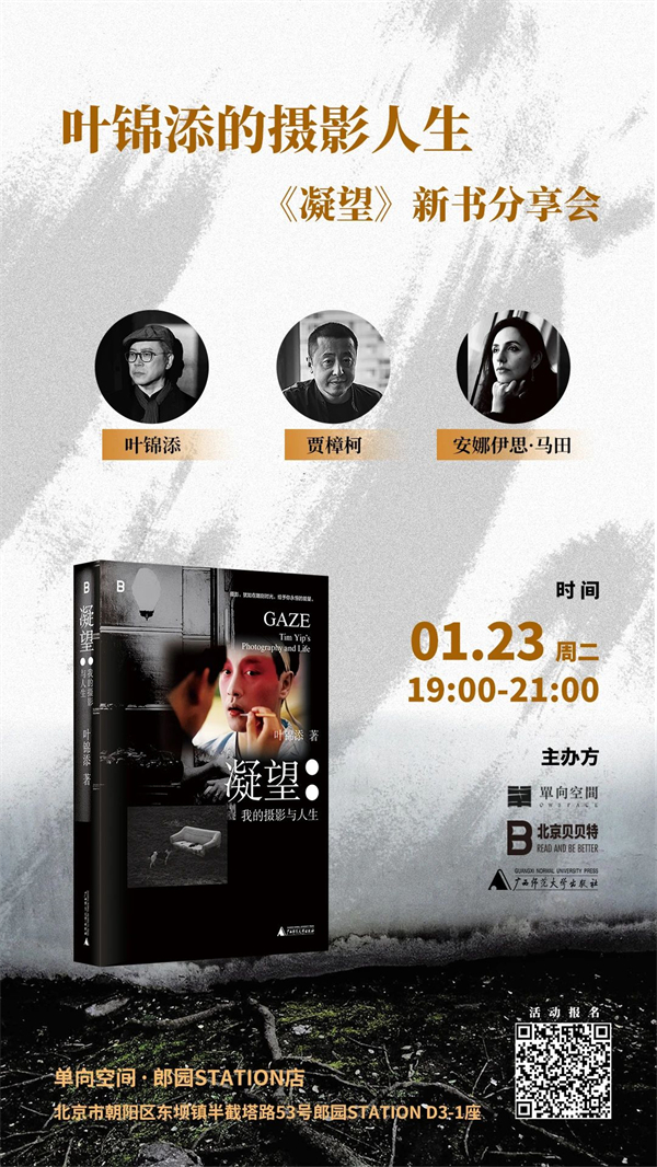 关于叶锦添,大家熟知的是他在电影与舞台美术、服装设计、戏剧、当代艺术等领域的造诣,少有人知道,他还是一位出色的摄影师,他的艺术之路,始于摄影,而摄影也一直贯穿于他的日常生活和艺术创作,他用手中的相机记录下了众多摄人心魄的永恒瞬间。1月23日,叶锦添将携新书《凝望》,与导演贾樟柯、艺术家安娜伊思·马田一起来到单向空间·郎园Station店,和读者朋友们一起聊聊摄影、艺术与人生。