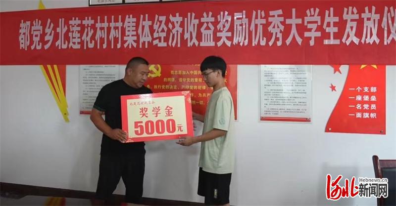 河北新闻网讯 近日,在邯郸市磁县都党乡北莲花村村委会办公室里,北莲花村党支部书记兼村委会主任崔宝军把装有5000元现金的信封交到崔浩冉手中,以奖励他今年考上中国地质大学。这5000元出自村子里的教育基金,来自北莲花村集体经济的收入,也是近几年北莲花村不断富起来、美起来的见证。