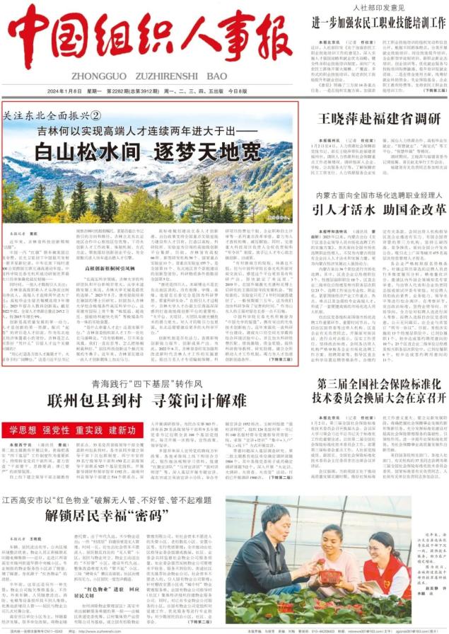 1月8日,《中国组织人事报》头版刊发《吉林何以实现高端人才连续两年进大于出——白山松水间 逐梦天地宽》