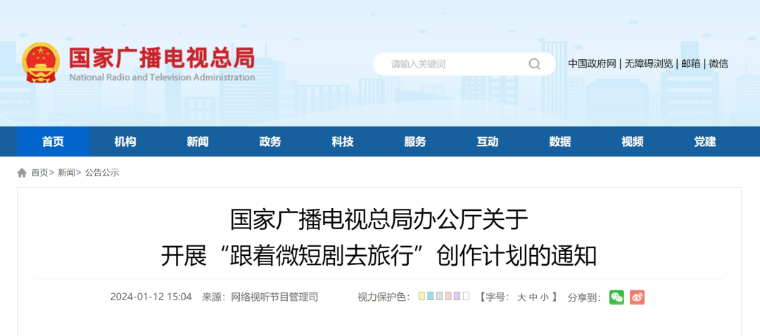 日前,国家广播电视总局印发《关于开展“跟着微短剧去旅行”创作计划的通知》(以下简称《通知》)提出,2024年创作播出100部“跟着微短剧去旅行”主题优秀微短剧,推动一批实体取景地跟随微短剧的热播“出圈”。