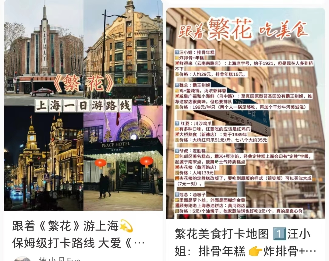 热剧《繁花》带出的各类打卡攻略 图片来源:小红书网友