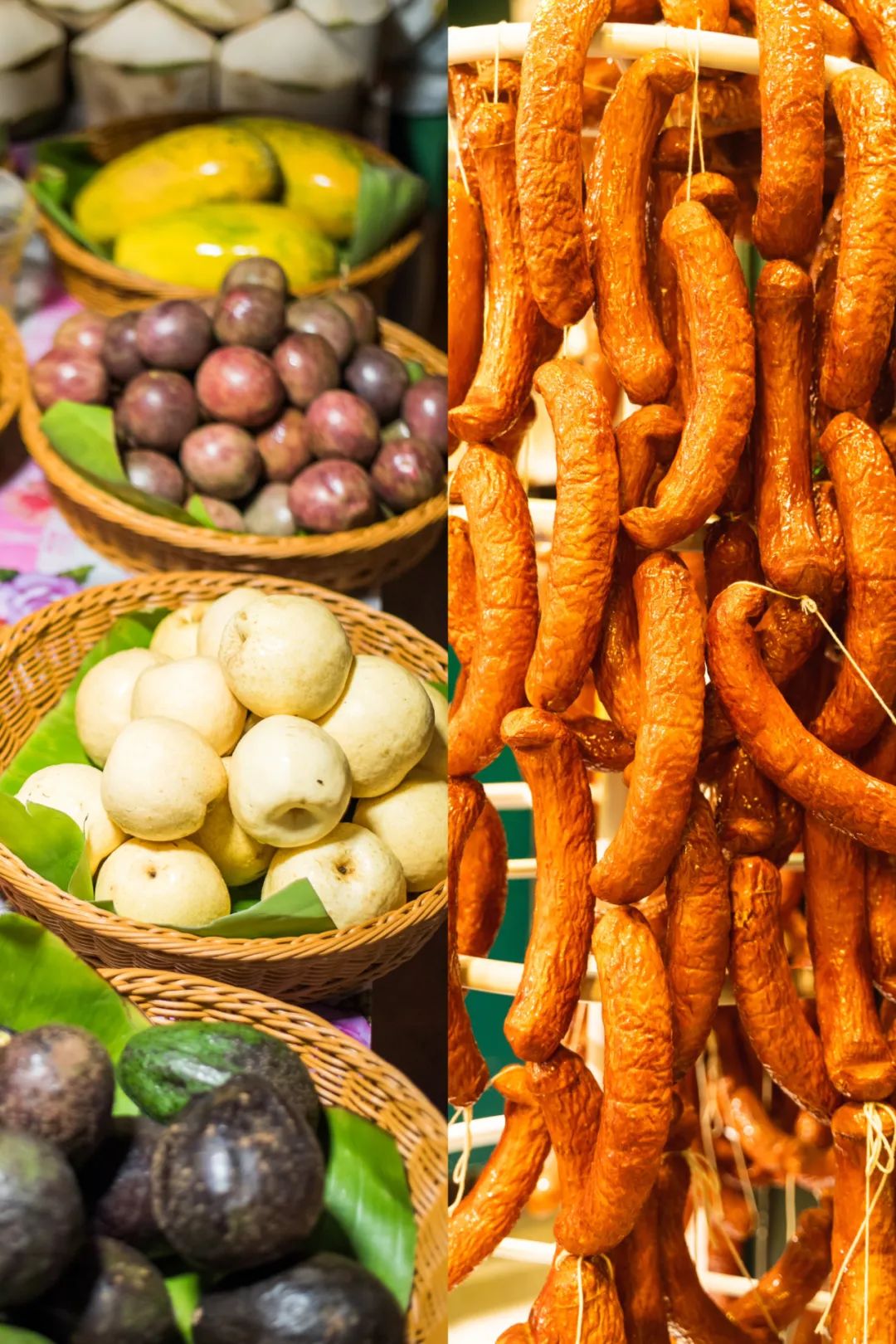 在附近,东北人自发形成了一条著名的“东北街”,一座座满是椰子、芒果等热带水果的水果摊,也科学地长出了东北酸菜、红肠与松花蛋。只不过,当地摊主遗憾表示,冻梨出现在水果摊上,还是略有难度,有待开发。