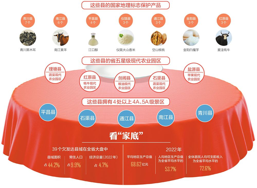 但随着近年来国家以前所未有的力度推进脱贫攻坚和乡村振兴,四川下大力气解决区域协调发展不足问题,39个县域在基础设施补短板、特色产业培育、基本公共服务提升等方面取得长足进步。