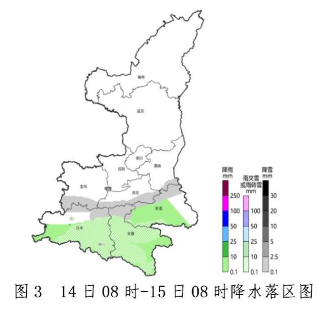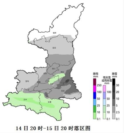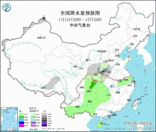 预计1月14日20时至15日20时,陕北中南部有小到中雪(2~5毫米),关中、商洛雨夹雪转小到中雪(1~5毫米),其中商洛部分、渭南东部部分地方、秦岭山区东段有大雪(5~8毫米),局地暴雪(10毫米以上);汉中、安康小到中雨或雨夹雪(3~10毫米);秦岭山区东段和巴山局地有冻雨。主要降水时段在15日白天。