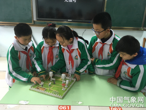 在气象工作人员的讲解下,同学们自己动手拼装观测场的仪器模型,孩子们兴高采烈的边拼装模型边了解仪器的观测原理、使用方法。该校领导表示,动手操作、趣味性强、互动性高的气象科普活动会让孩子们更乐意接受。