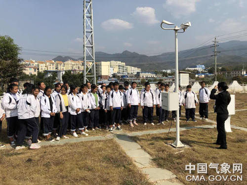 在工作人员地引导和介绍下,师生们先后参观了地面观测场和现代化业务平台,知晓能见度仪、大型蒸发、地温场、日照计等气象观测设备用途,以及气象要素的采集、传输、处理流程,并通过观看科普宣传短片,了解天气预报制作和气象工作者应对灾害性天气服务过程。