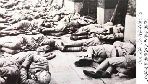 上海市民推门出户看到的是,在自己家门口,成排的解放军战士全副武装露宿街头。上海老百姓们感到稀奇,他们从来没有见过这样本色的军队,这是一支什么样的部队,攻入城市,打了胜仗,却坚持“进城不扰民”,占领了一个城市,下雨天居然不入民宅,就这么睡在潮湿的马路上。为了不影响市场供应和金融秩序,三野规定解放军入城后一律不允许在市区买东西,甚至部队吃的饭菜,也是在几十公里以外的郊区做好,再送到市区。上海工商界知名人士刘靖基回忆当年的情景时激动地说:“几十年来从北洋军阀到国民党,我从来没有见过这样好的军队,真是出乎意料。”霎时间,香港和国外媒体上,醒目地出现了解放军露宿十里洋场街头的照片,人民解放军威武之师、文明之师的形象名扬世界。正如美国《生活》杂志所说:“国民党的时代已经结束。”