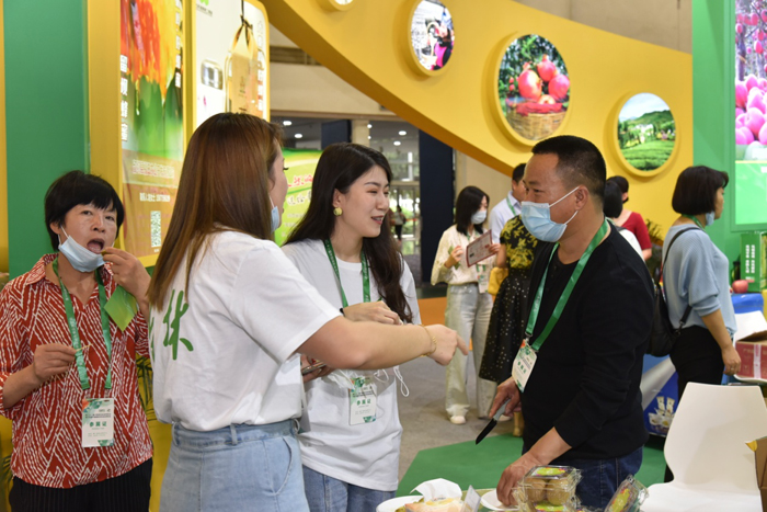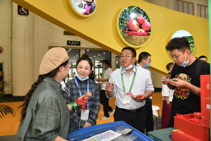 “你尝一下我们礼泉小河御梨,皮薄、核小、渣细、糖度高……”参展商武林池细数自家御梨优势推介……