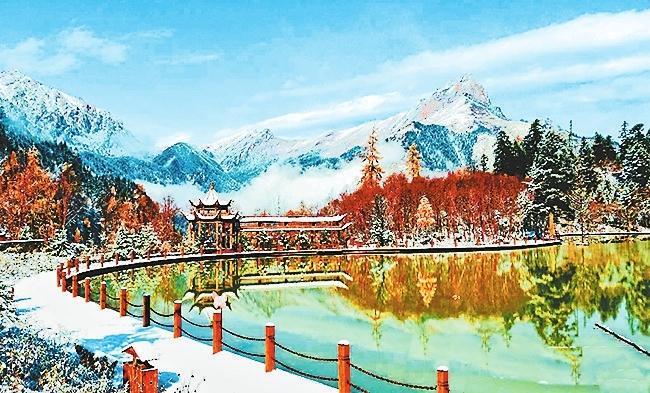 这里,空气清新,气候宜人,远处的高山被冬日的艳阳和蓝天映照得更加耀眼,呈现出层次不一的颜色。山间潺潺的溪水也被皑皑白雪覆盖住,在白雪的包围下,依然奔流不息,为景区呈现别样的景致。天然的冰瀑,为景区注入了活力,让景区更加鲜活灵动。被白雪包裹的雪松,静静地矗立在高山和道路两旁,给冬日官鹅沟带来不一样的韵味。