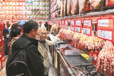 皇上皇店内,不少客人在选购腊味。