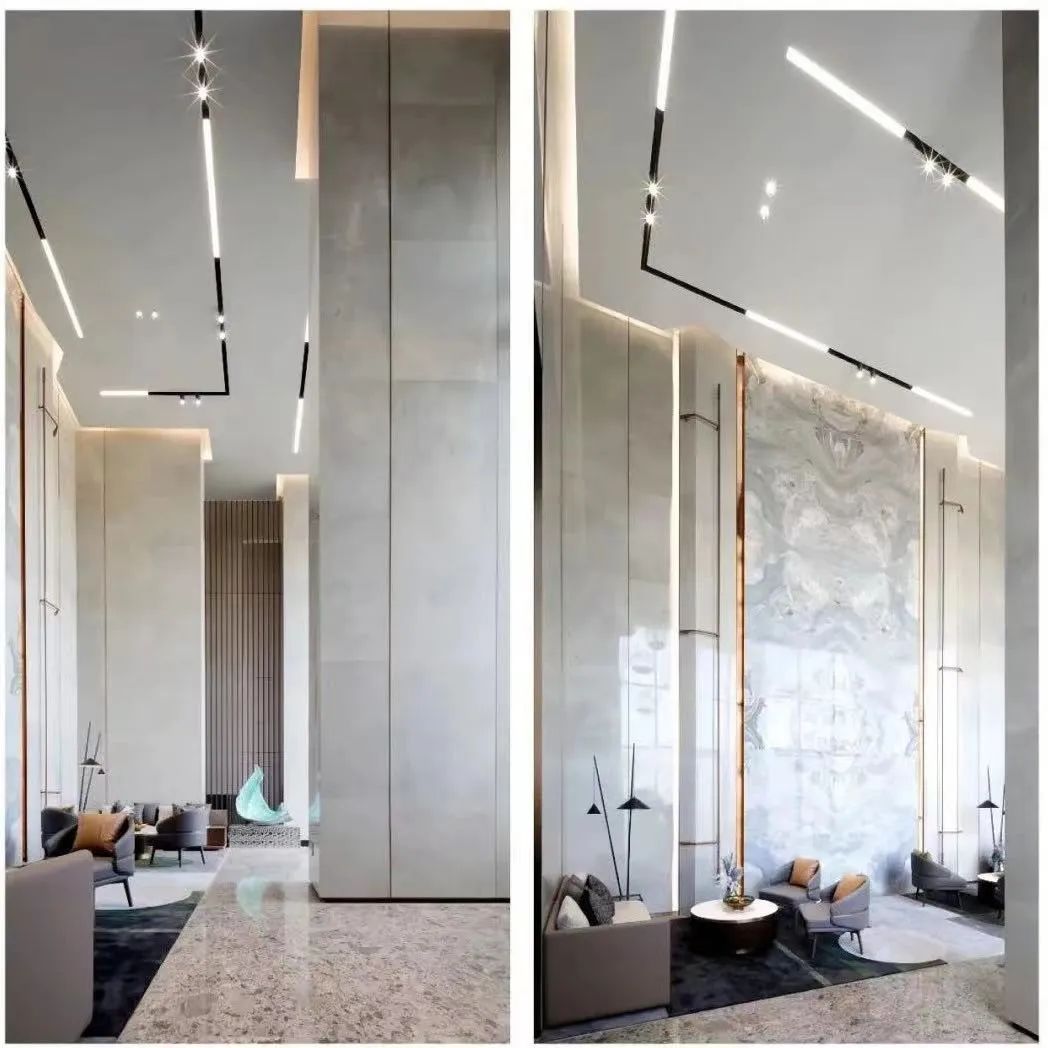 在超阔巨厅中,带来造型岩板交付,直接让整个空间充满质感。