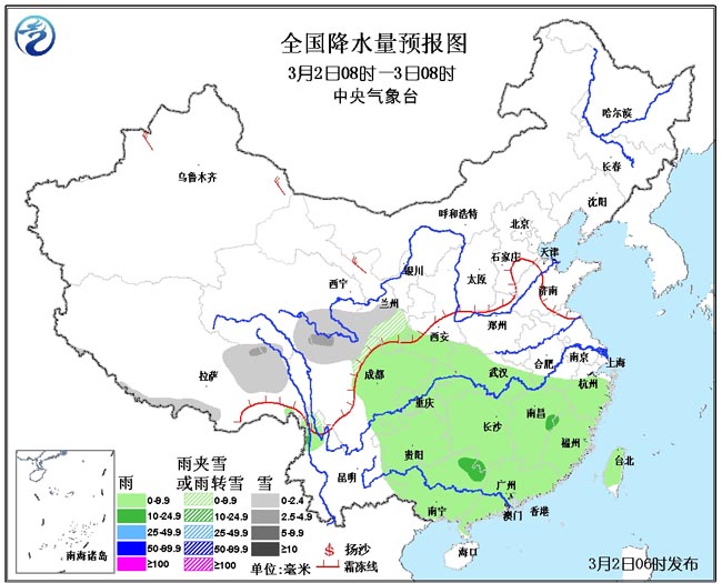 6日起,南方地区将迎来一次较为明显的降雨过程,长江中下游部分地区将出现大雨。