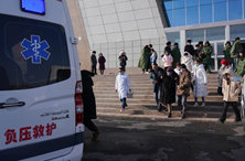 1月23日,在新疆阿合奇县,救护车将应急避难处一名身体不适的居民转移到医院进行检查救治。地震发生后,国家防灾减灾救灾委员会办公室、应急管理部会同国家粮食和物资储备局紧急调拨棉帐篷、棉大衣(防寒服)、棉被、棉褥、折叠床、取暖炉等共计2.2万件中央救灾物资,支援新疆做好抗震救灾和受灾群众转移安置等保障工作。