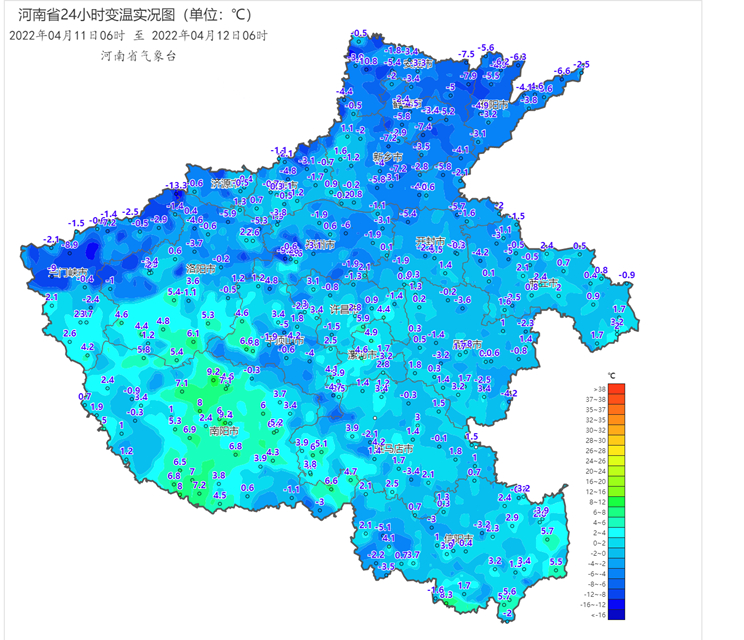 降温:今日06时西部、北部大部分地区气温较昨日下降6到13℃,气温最大降幅林州市马安脑13.5℃。目前,西部北部气温在 10~16℃之间,其它地区17~20℃。