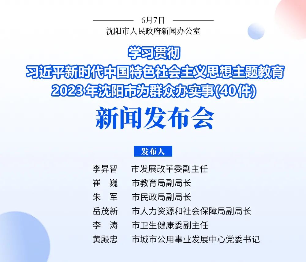 按照本次新闻发布会的安排,下面就《关于在沈阳全面振兴新突破三年行动中进一步保障和改善民生的实施意见及2023年沈阳市为群众办实事(40件)》情况进行新闻发布。