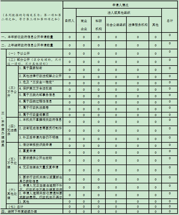 全年未收到依申请公开。无针对本部门有关政府信息公开事务的行政复议、诉讼、申诉案例。