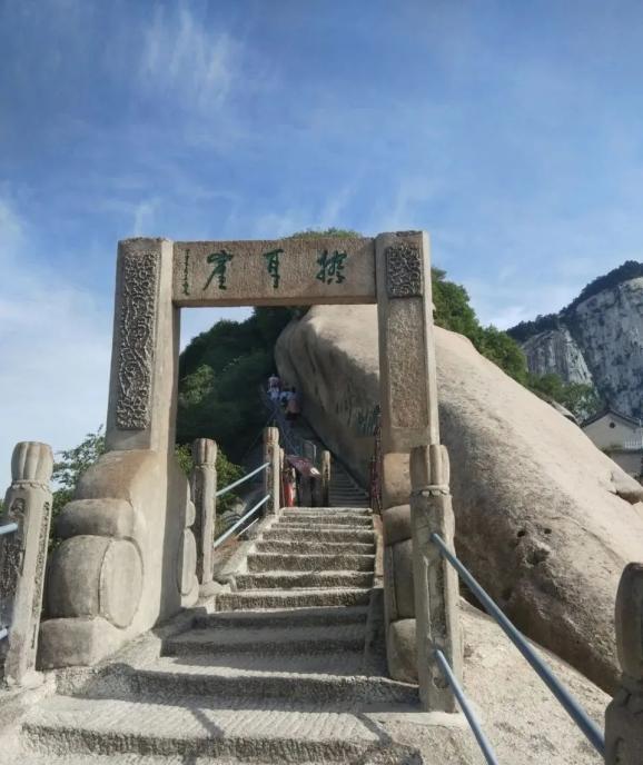 华山南峰又名落雁峰海拔为2154.9米,是华山最高主峰,也是五岳的最高峰,古人尊称它是“华山元首”。登上南峰绝顶,顿感天近咫尺,星斗可摘。峰顶摩崖题刻更是琳琅满目,俯拾皆是。冯贽在他的《云仙杂记》中记述唐诗人李白登上南峰感叹说:“此山最高,呼吸之气想通天帝座矣,恨不携谢眺惊人句来搔首问青天耳”。