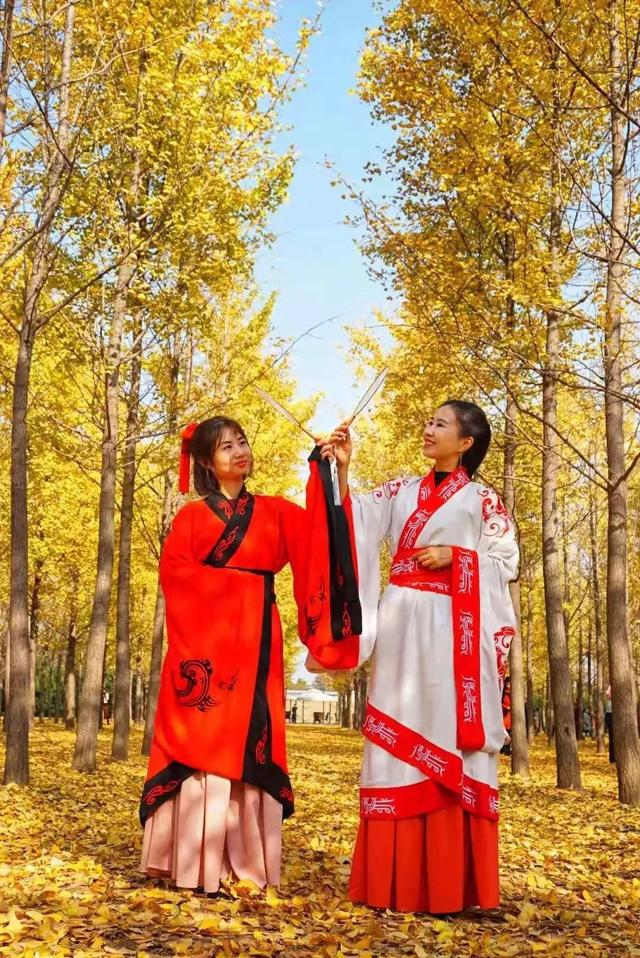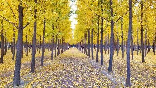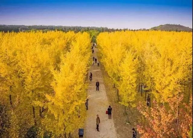 汉阳陵最出圈的当属上千亩的银杏林,金秋时节,金色的银杏林翻涌成金色的海洋,是许多汉服爱好者的打卡圣地。