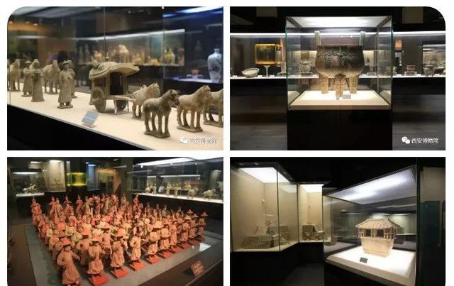 西安博物院文物展馆的陈列由基本陈列、专题陈列、临时陈列三部分组成。