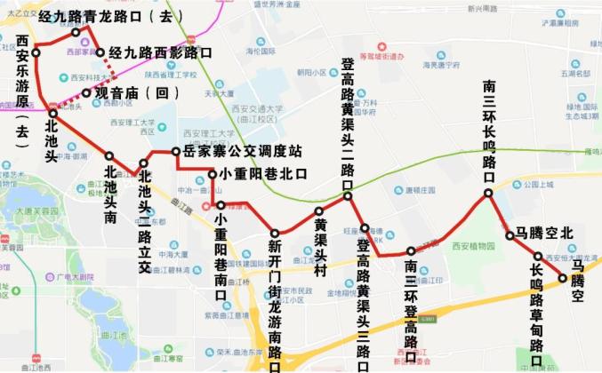 新增站点4个:西安乐游原(去)、经九路青龙路口(去)、观音庙(回)、经九路西影路口。
