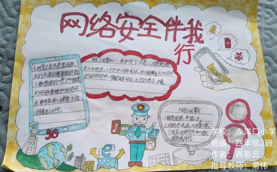 活动中,全区中小学生围绕网络安全、文明上网、反电信诈骗、未成年人网络保护等内容创作手抄报。在收集资料、阐释内容、创作绘制的过程中,指导教师和同学们对《未成年人网络保护条例》进行了一次深入的学习和解读,一幅幅生动的图画、朴实的语言让网络安全知识扎根孩子们心里,网络保护意识进一步增强。