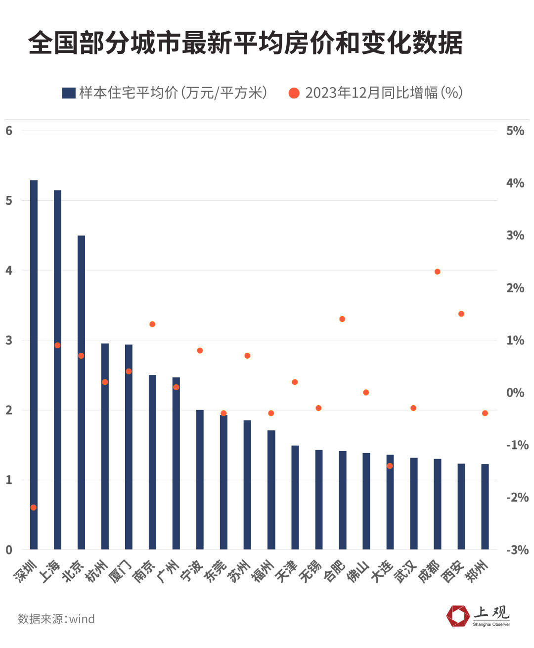 2023年,几乎各大城市的房价增幅都出现了下滑。