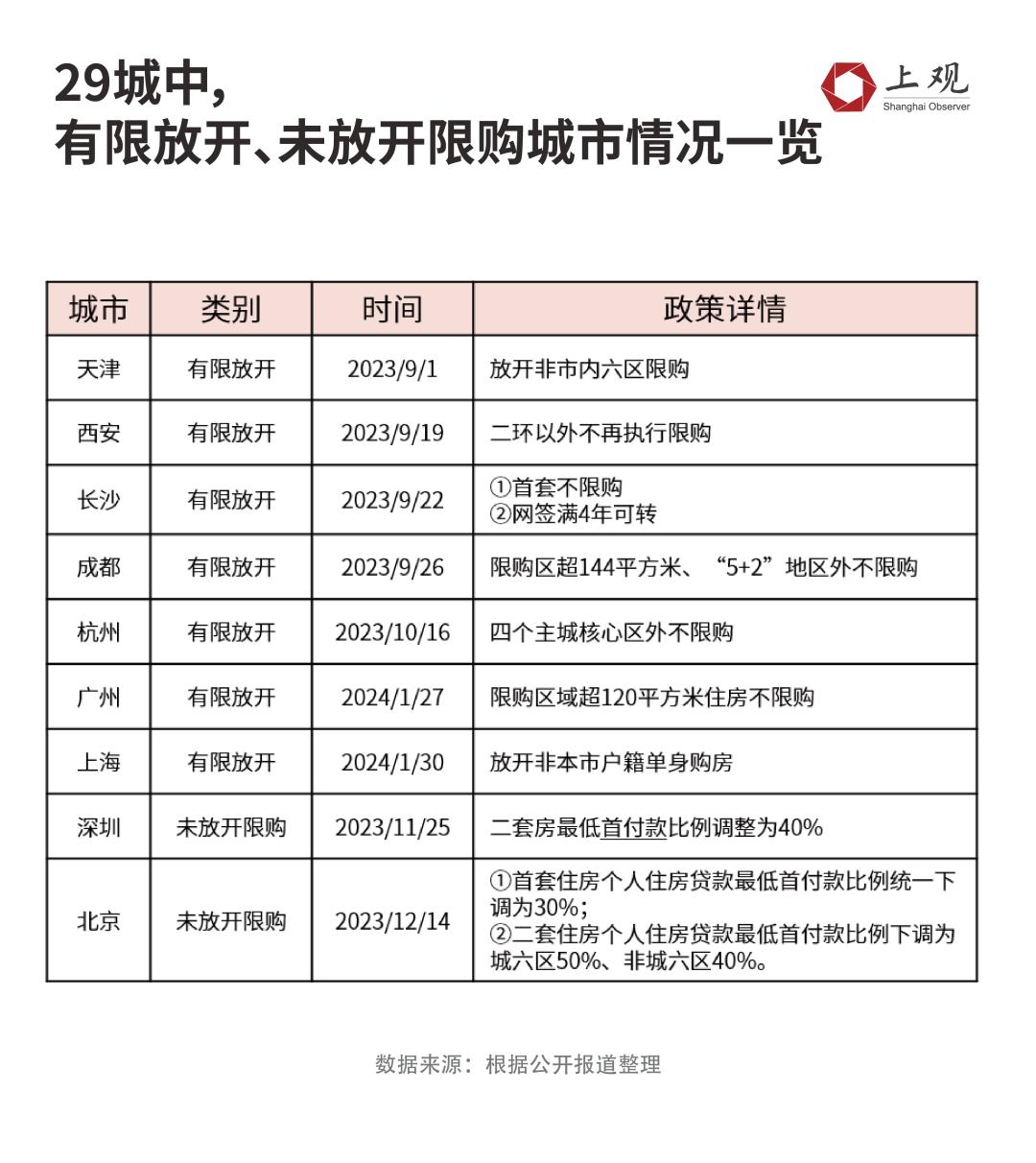 1月30日,上海官宣放开外环外非本市户籍单身购房。同一天,苏州全面放开限购政策,购房不再限面积及套数。