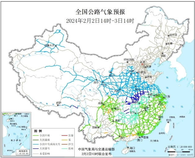 图3 全国公路气象预报图(2月2日14时-3日14时)