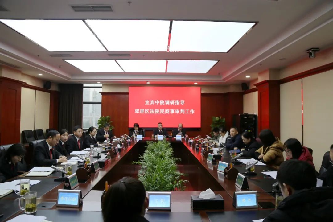 1月31日,宜宾中院副院长赵良剑带领该院民一庭、民二庭庭长和部分员额法官一行,到翠屏区人民法院调研指导民商事审判工作,并对提高民商事审判质效提出要求。翠屏区法院党组书记、院长汪松,副院长侯旭、卢阳,审判委员会专职委员孙家岭,民商事审判条线部门负责人及部分员额法官参加座谈会。