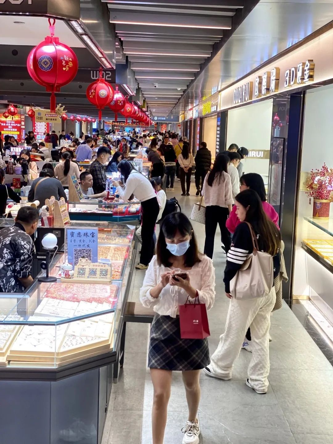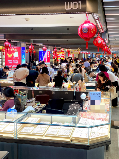 “现在买金的很多都是年轻人,有自己来的,也有拖家带口来的。”水贝金座某黄金柜台工作人员向记者表示。