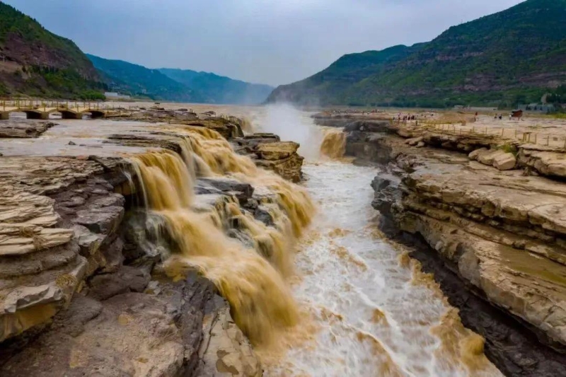 黄河壶口瀑布旅游区位于晋陕大峡谷中段,是世界上最大的黄色瀑布,也是中华民族精神的象征,有“千里黄河一壶收”的美誉。特别是每年夏秋季节,黄河壶口段受黄河中上游降雨和水库调水影响,水流将会增大到每秒2000立方米左右,并形成绵延数百米的瀑布群景观,蔚为壮观。