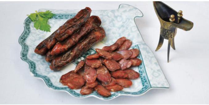 【景芝香肠】安丘人年夜饭上必不可少的一道过年专属大餐就是腌制香肠。每个家庭中的精明主妇在年夜饭之前的顺菜环节时,这道美食一般都是首先制作完成的。把挂在室外,提前腌制好的香肠取下,放在蒸锅里蒸熟,放凉后切成薄片,呈圆形整齐的摆放在餐盘中,像一朵富贵花层层叠起,更寓意着团团圆圆。咬上一口,猪肉肥瘦相间的香味和腌制后的味道充斥着味蕾,安丘人的童年记忆瞬间被激活了。
