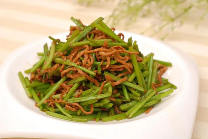 【景芝小炒】景芝小炒,顾名思义,源于齐鲁三大古镇之一景芝镇,也是安丘人年夜饭桌上常见的一道菜。景芝小炒最经典的是香菜炒肉,也叫芫荽炒肉丝,香菜星人有口福了。这道菜肉丝鲜嫩,香菜清脆,香气扑鼻。其他还有韭菜炒肉丝,蒜薹小炒肉 ,贡菜小炒肉。景芝小炒讲究爆炒,热油旺火,快速煸炒,简便迅捷,就像景芝这座齐鲁古商埠一样,往来交通追求一个高效便利,但又食不厌精、脍不厌细。