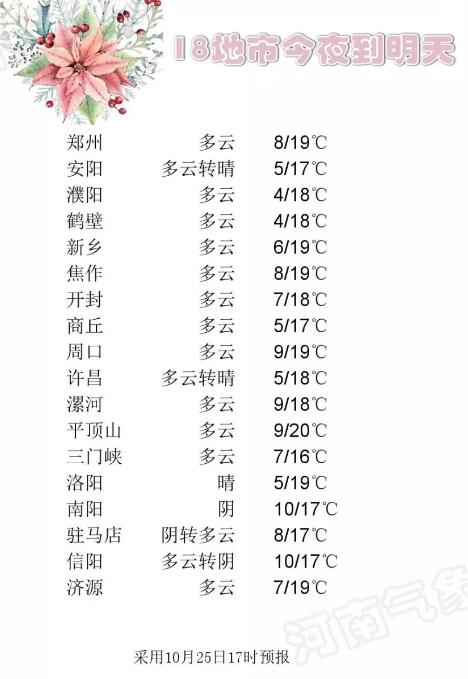 今天白天全省转为晴好天气,并且未来一周气温波动不大。像省会郑州气温基本维持在22℃左右。