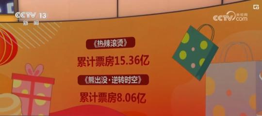 网络平台数据显示,截至2月13日21时,2024年春节档上半程(2月10日—2月13日)总票房达44.55亿,其中,《热辣滚烫》累计票房15.36亿,成为春节档上半程票房冠军。《熊出没·逆转时空》累计票房8.06亿,获影史春节档动画片档期票房冠军。