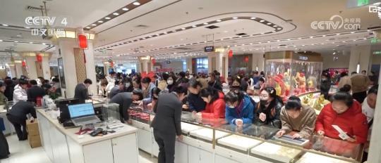 在山东济南的这家黄金门店,不少年轻人们争相购买黄金饰品孝敬老人、馈赠亲友,不少款式已经售罄。