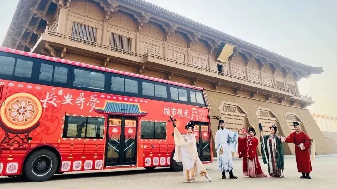 搭乘《长安寻梦》观光车前来体验