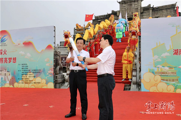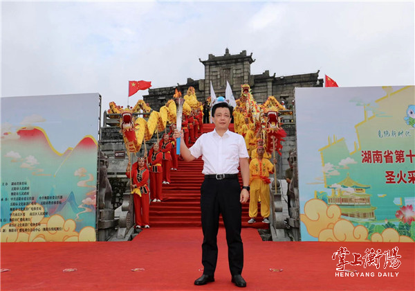 衡阳日报7月20日讯(全媒体记者陈润 罗茂盟)7月19日上午,湖南省第十四届运动会圣火采集仪式在南岳衡山祝融峰顶成功举行。省人民政府党组成员、衡阳市委书记秦国文出席并点燃第一棒火炬,省体育局党组书记熊倪出席并讲话,岳阳市委书记曹普华出席,衡阳市委副书记、市长朱健致欢迎辞,岳阳市委副书记、市长李挚出席。