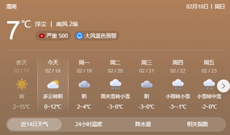 【渭南市气象台发布大风蓝色预警】渭南市气象台2024年02月18日发布大风蓝色预警信号:预计下述地区未来24小时内将受大风影响,平均风力4-5级,阵风可达6级以上,部分地方伴有扬沙或浮尘:临渭区、华阴市、华州区、潼关县、大荔县、澄城县、合阳县、蒲城县、富平县、白水县、韩城市,请注意防范。