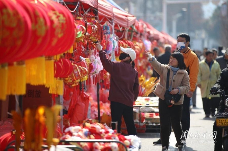 在渭南市各地的名胜景点、街头巷尾,各式各样的大红灯笼、喜庆的福字将城市装扮一新。