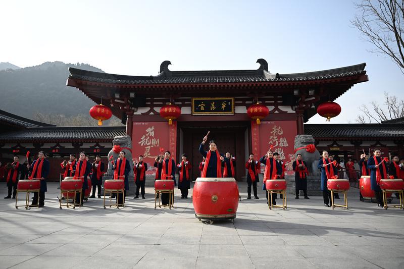 鼓声起,锣声响。2月10日大年初一,华清宫景区望京门外热闹非凡,舞龙舞狮、迎春秧歌锣鼓、新春唐宫乐舞等节目洋溢着浓郁的年味。一大早,来自全国上千名游客挥舞国旗,一起高唱《歌唱祖国》,在嘹亮的歌声中开启甲辰龙年第一天。