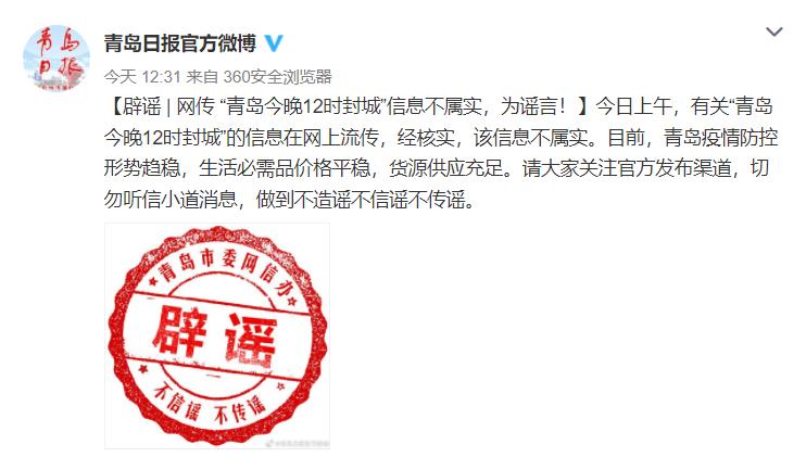 3月15日上午,有关“青岛今晚12时封城”的信息在网上流传,经核实,该信息不属实。